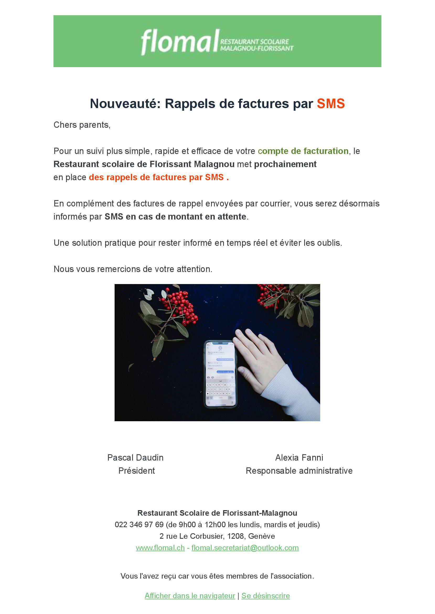 NEW : factures de rappels par SMS